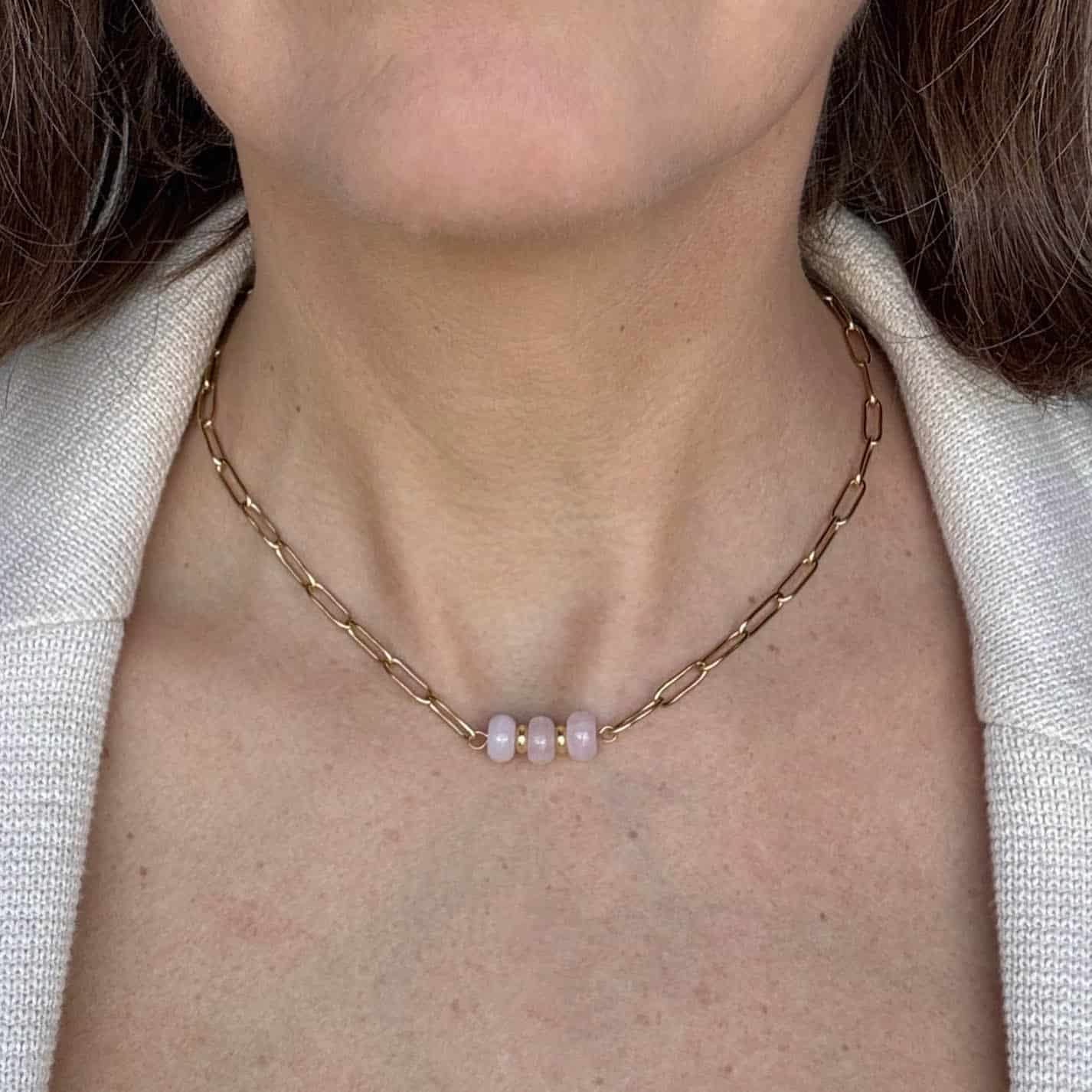 Hoe mooi is deze sieradenset met roze kralen Italia. De gouden paperclipschakels passen helemaal bij de trends van nu. De grote, roze kralen van Kristal hebben een prachtige glans en een zachte kleur, zodat de sieraden bij veel van je outfits matchen. Zowel de ketting als de armband zijn verstelbaar, zodat je kan afwisselen met hoe lang je deze draagt. De ringen van de oorbellen zijn 18k verguld en gedetailleerd met vergulde gouden tussenkralen.