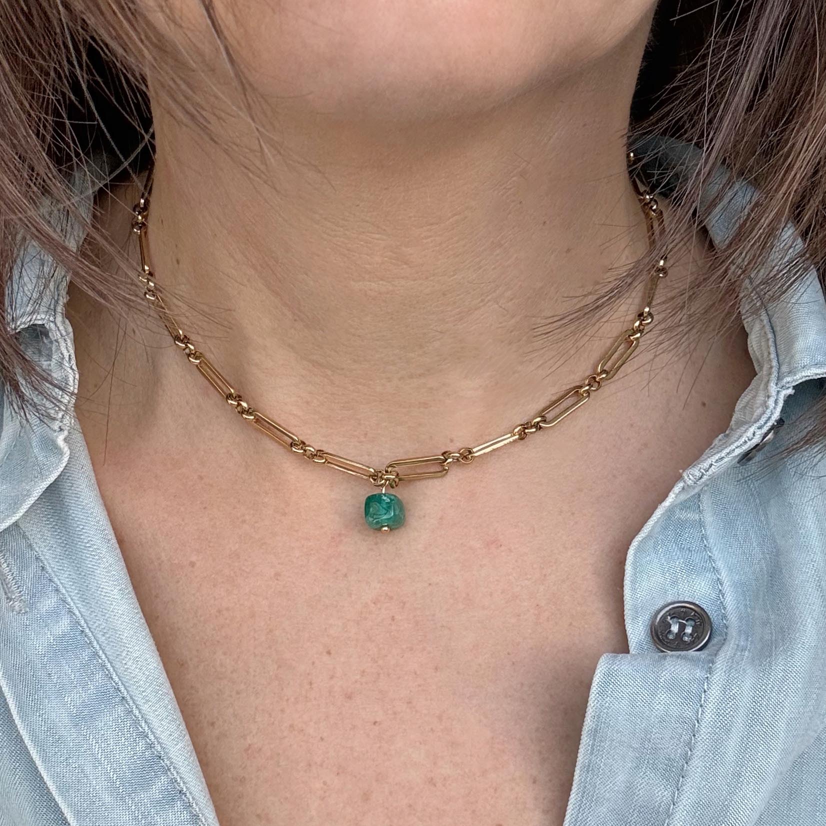Ontdek de tijdloze schoonheid van de prachtige ketting Marrone met speelse schakels en een bedel van groen Agaat. Met een perfecte balans tussen stijl en elegantie is deze ketting een must-have accessoire. De groene kleur van de edelsteen is betoverend en de stevige schakels van stainless steel (rvs) beloven je eindeloos plezier van dit sierraad.