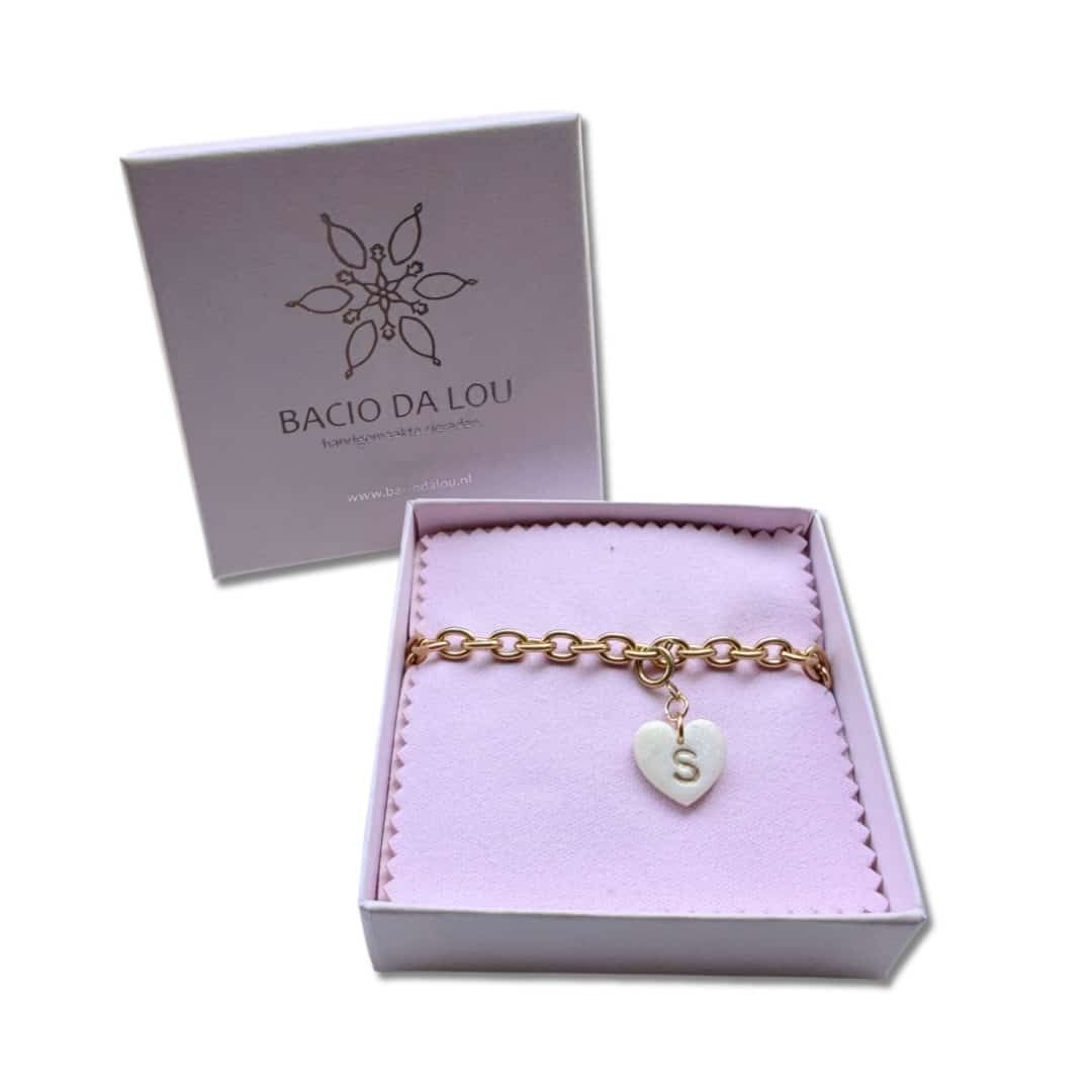 - De bedel met hartje en letter is een los item, voorzien van een slotje