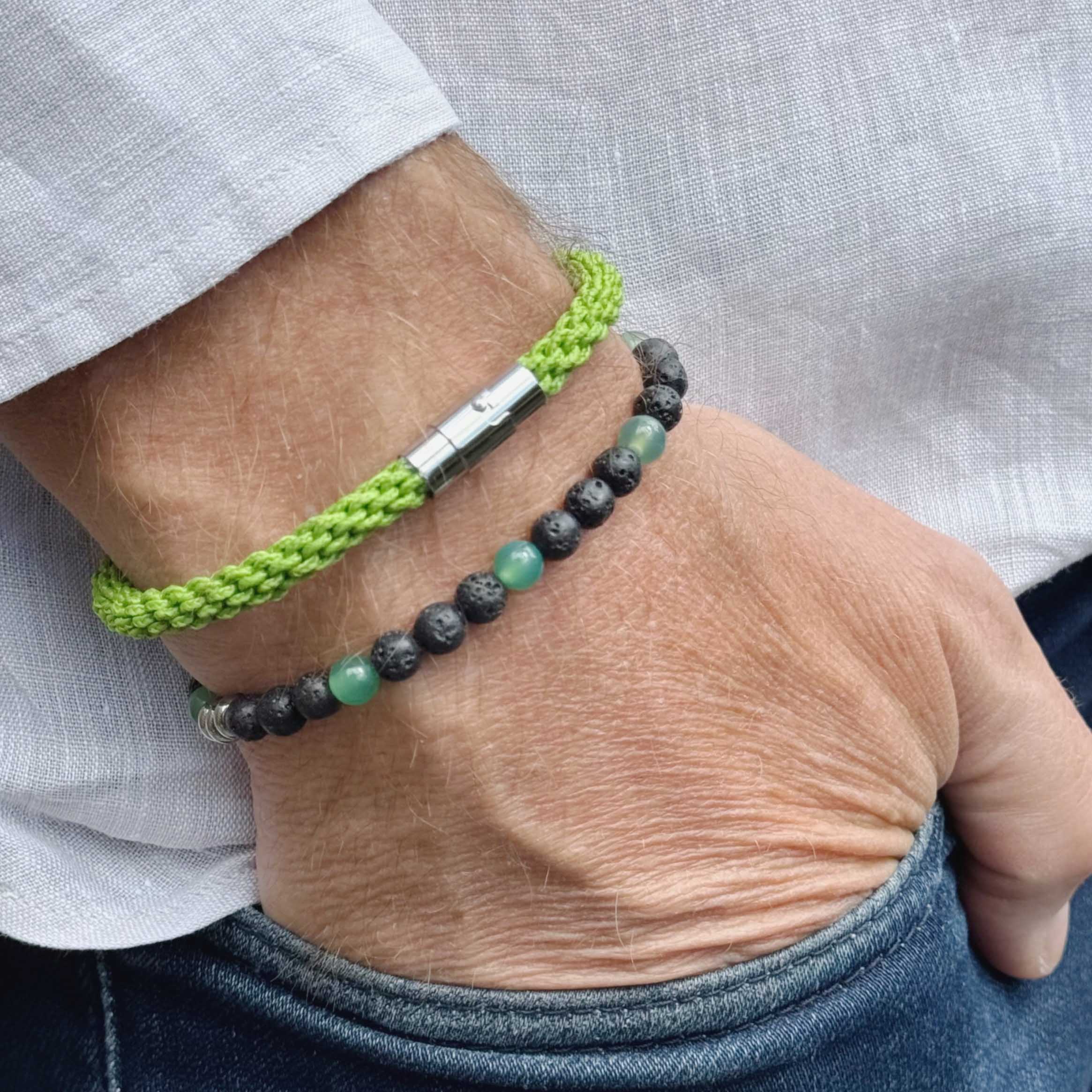 Groene herenarmband van koord Roma is een gevlochten armband van premium paracord. De roestvrijstalen magneetsluiting geeft de armband een stoer uiterlijk en hiermee klik je de armband in een handomdraai open en dicht. De armband Roma is verkrijgbaar in 5 maten, dus altijd eentje die past.